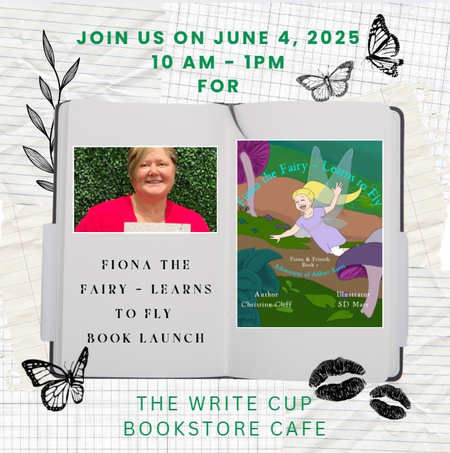 Christine Cliff will be in at 10 a.m. to launch her children’s book, Fiona the Fairy—Learns to Fly!