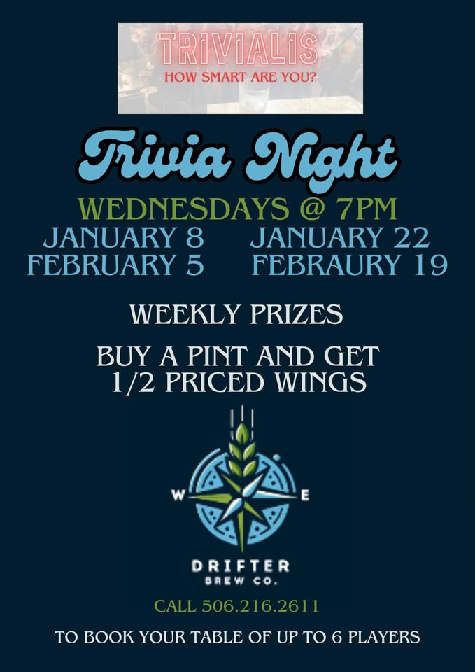 📍 Where? Drifter Brew Co. 📞 Call 506.216.2611 to book your table for up to 6 players now!