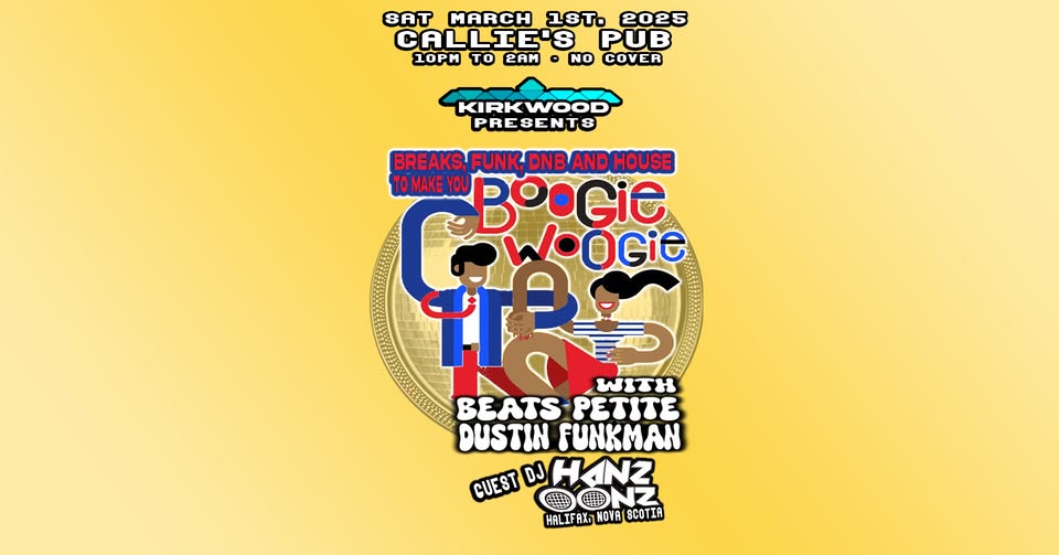 March 1, 2025 @ 10:00 pm - 2:00 am BOOGIE WOOGIE at Callies Pub Callie's Pub 2 Princess Street, Saint John, New Brunswick, Canada BarDJElectronicFeaturedLive MusicSaint JohnSoul+Funk