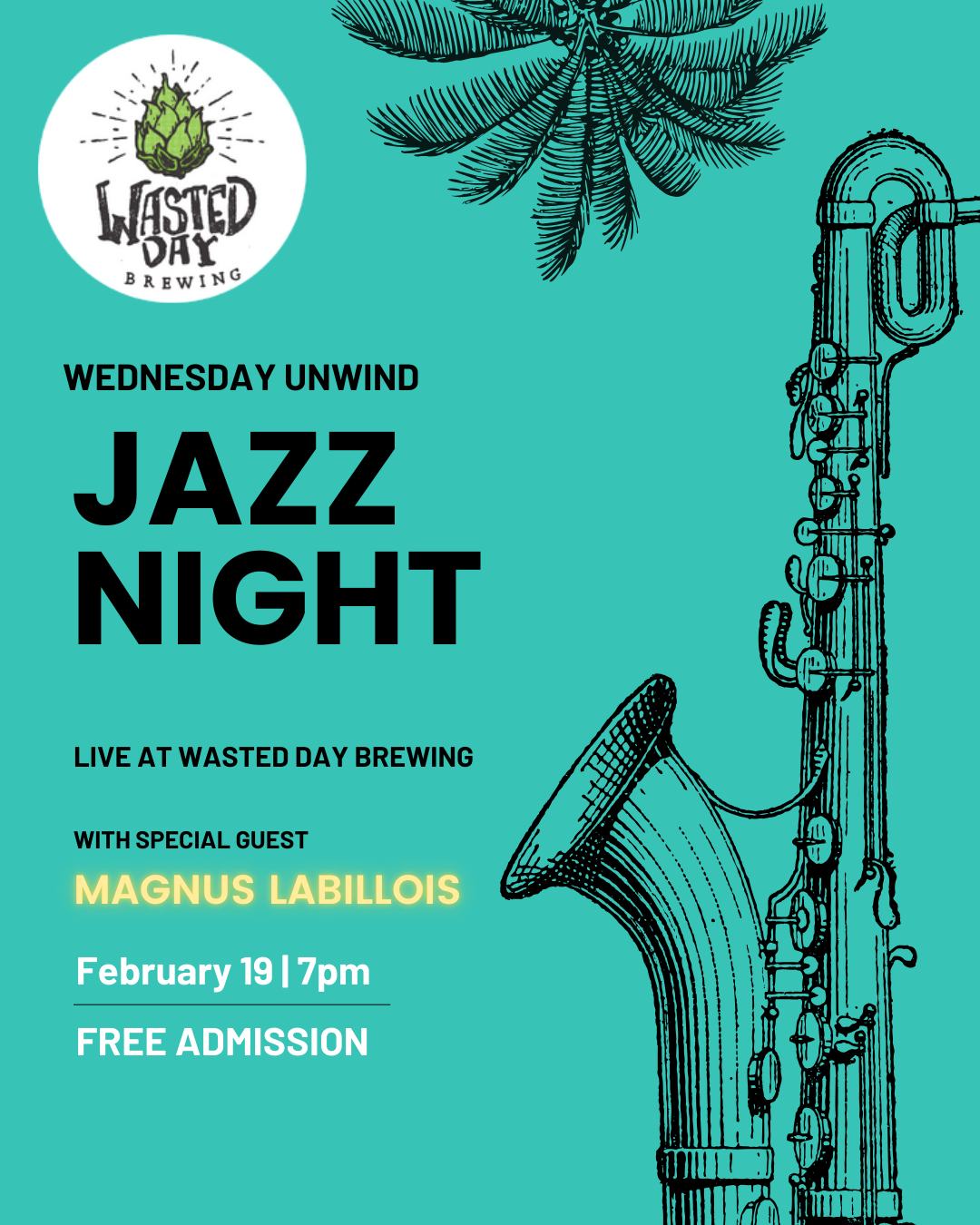 February 19, 2025 @ 7:00 pm - 10:00 pm The Wednesday Unwind Wasted Day Brewing 36 Water Street, Saint John, New Brunswick, Canada BarFeaturedJazz+BluesLive MusicSaint John