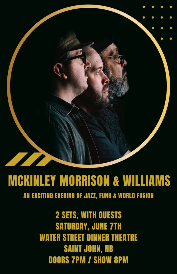 June 7, 2025 @ 7:00 pm - 10:00 pm McKinley Morrison & Williams at Water Street Dinner Theatre Water Street Dinner Theatre 110 Water Street, Saint John, New Brunswick, Canada Dinner TheatreFeaturedJazz+BluesLive MusicSaint JohnSoul+Funk