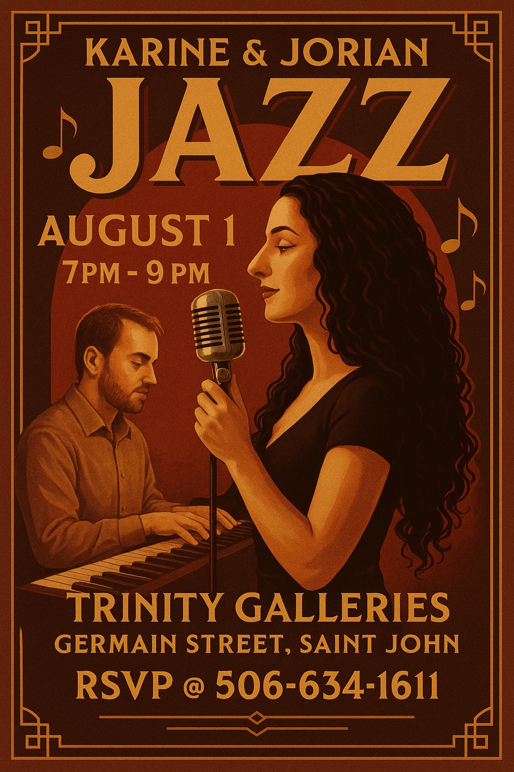 August 1, 2025 @ 7:00 pm - 10:00 pm Karine & Jorian 7pm @ Trinity Trinity Galleries 128 Germain Street, Saint John, Saint John, Canada FeaturedGalleryJazz+BluesLive MusicSaint John