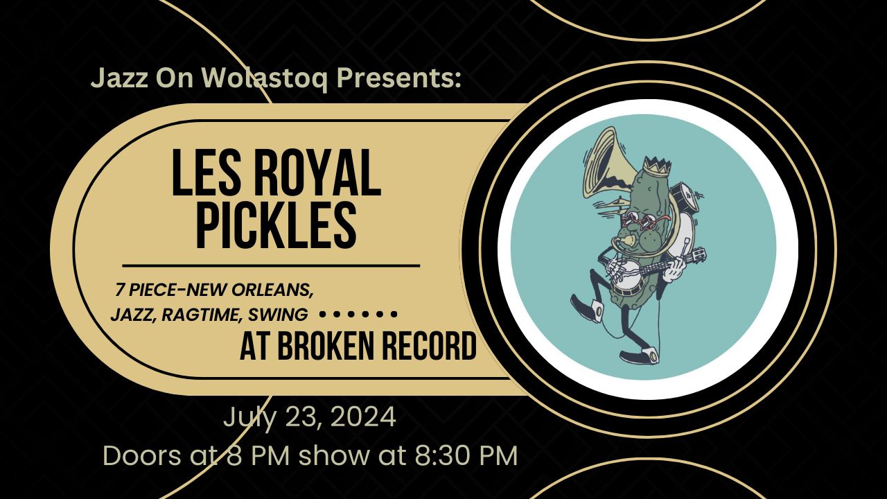July 23, 2024 @ 8:30 pm - 11:30 pm Jazz On Wolastoq- Les Royal Pickles Broken Record Bar & Music Room Queen Street, Fredericton, New Brunswick, Canada BarFestivalFrederictonJazz+BluesLive Music