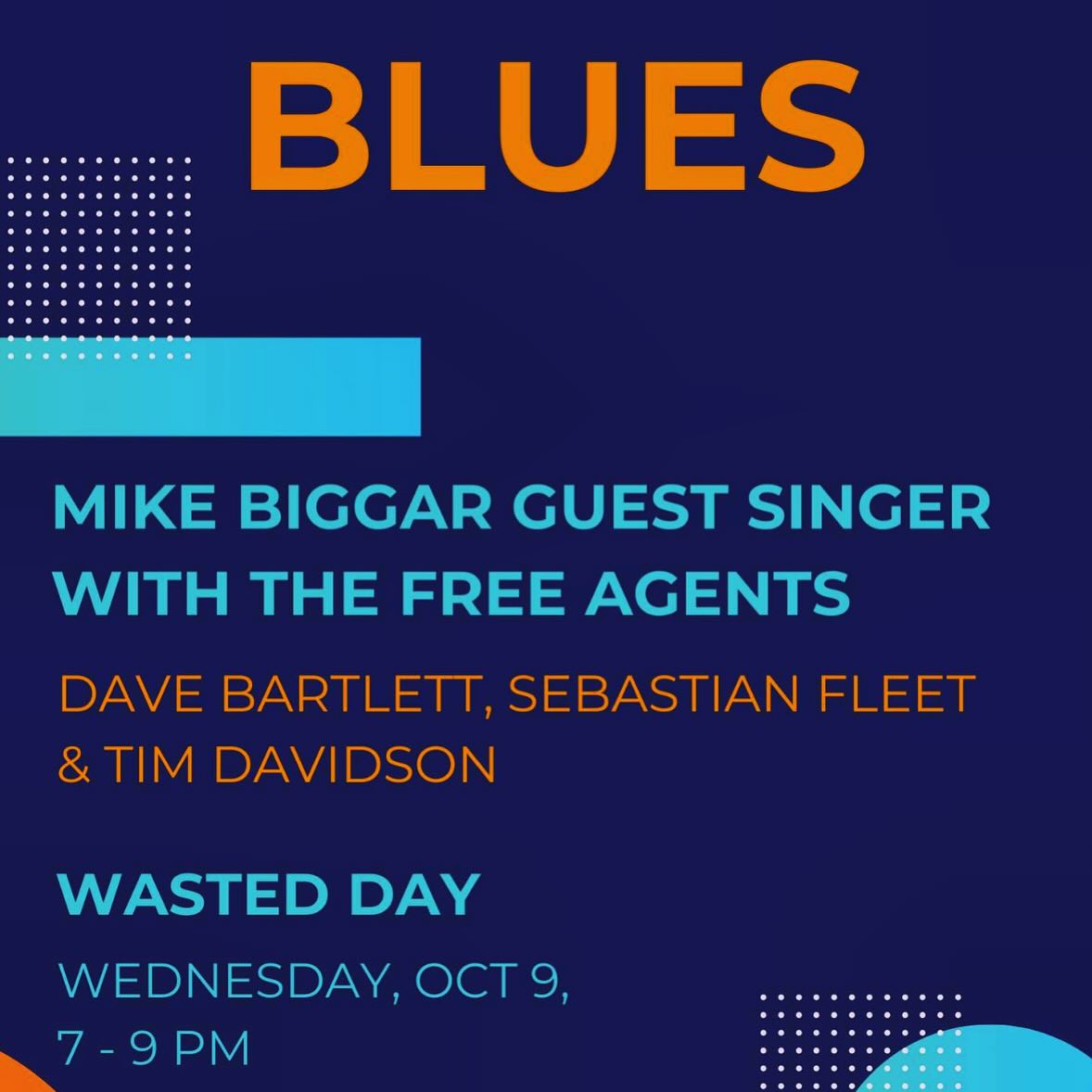 October 9, 2024 @ 7:00 pm - 9:00 pm Blues – Mike Beggar with the Free Agents Wasted Day Brewing 36 Water Street, Saint John, New Brunswick, Canada BarFeaturedJazz+BluesLive MusicSaint JohnSinging