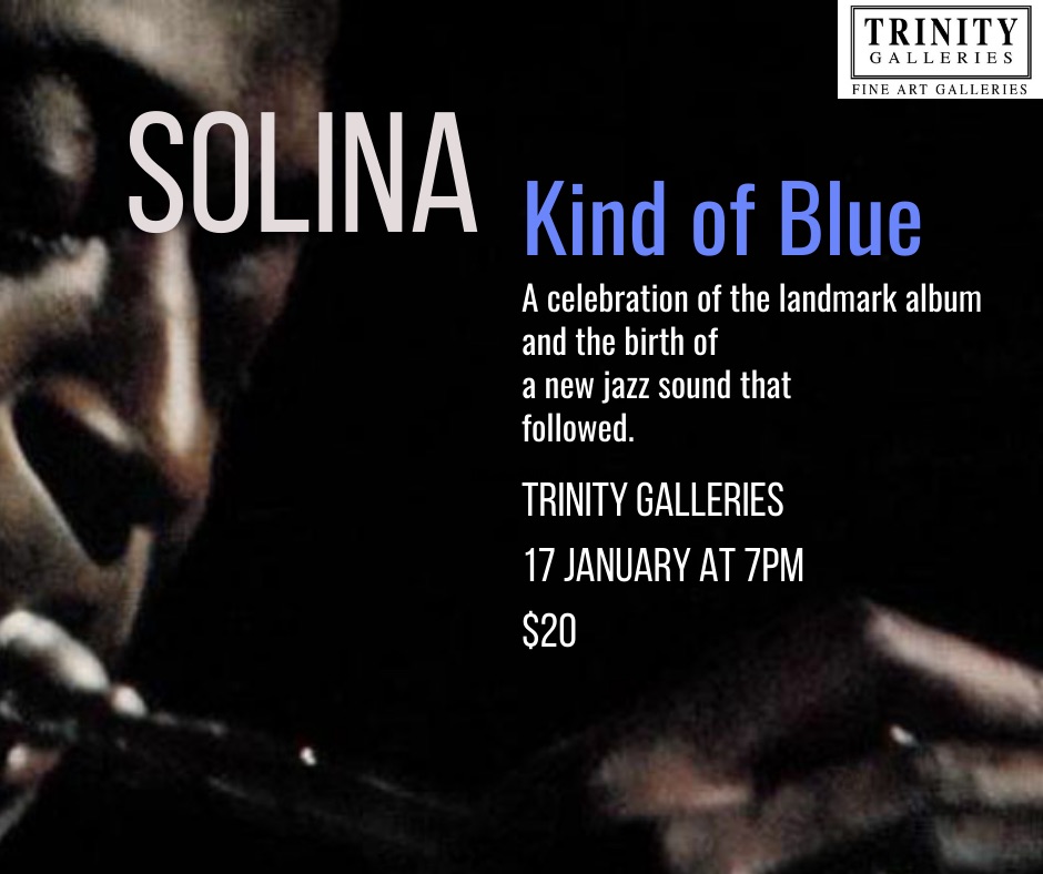 January 17, 2025 @ 7:00 pm - 10:00 pm Solina presents Kind of Blue – A Celebration of the landmark album and the birth of a new jazz sound Trinity Galleries 128 Germain Street, Saint John, Saint John, Canada FeaturedGalleryJazz+BluesLive MusicSaint John