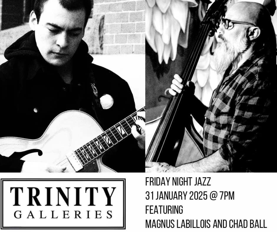 January 4, 2025 @ 7:00 pm - 10:00 pm Friday Night Jazz with Magnus Labillois & Chad Ball Trinity Galleries 128 Germain Street, Saint John, Saint John, Canada FeaturedGalleryJazz+BluesLive MusicSaint John